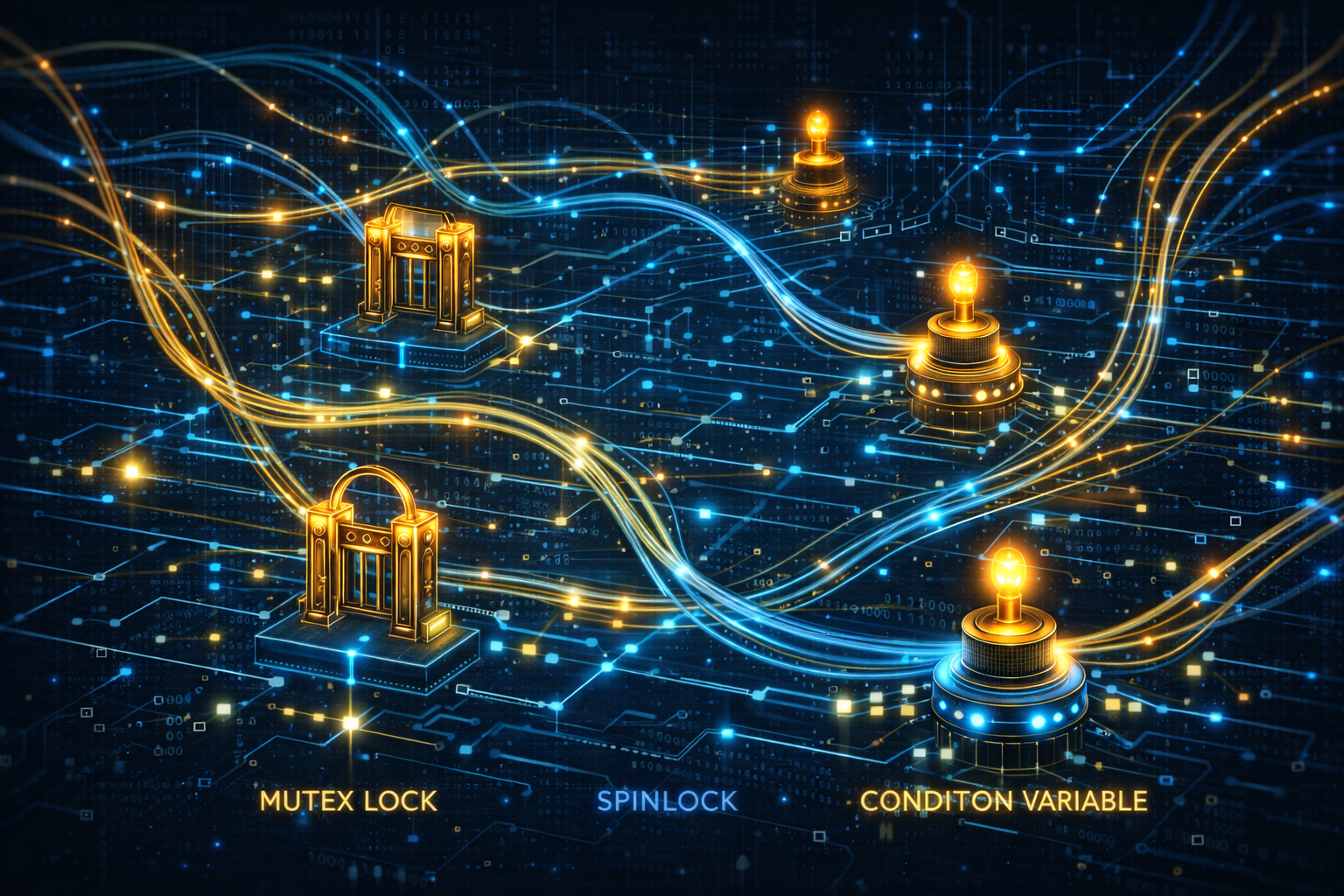 Concurrent programming requires thinking about not just what operations occur, but in what order they might occur across threads. From the hardware-level atomic instructions through spinlocks, mutexes, and condition variables to sophisticated lock-free algorithms, each layer builds on the foundations below. The key insights remain constant: minimize sharing, protect what must be shared, understand the memory model, and always verify correctness with appropriate tools. Mastering these primitives enables you to harness the full power of modern multicore systems while avoiding the subtle bugs that make concurrent programming notoriously difficult. Whether you choose locks for their simplicity or venture into lock-free territory for performance, the principles of synchronization guide you toward correct, efficient parallel programs.