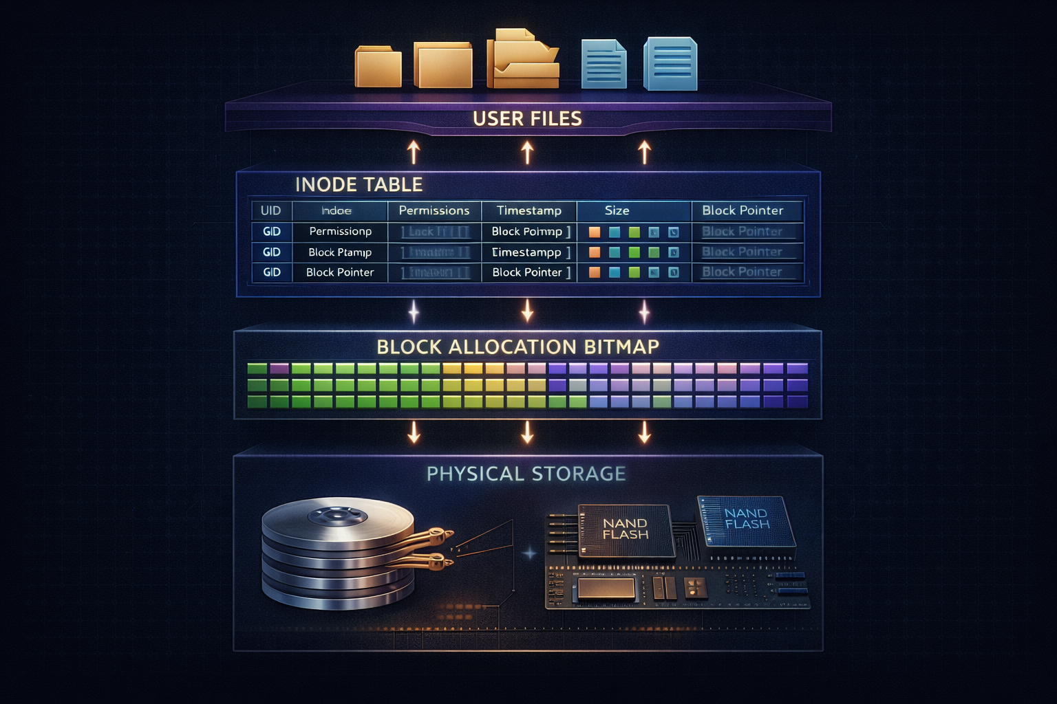 A comprehensive exploration of file system architecture, from inodes and directories to journaling and copy-on-write. Understand how operating systems organize, protect, and efficiently access persistent data.