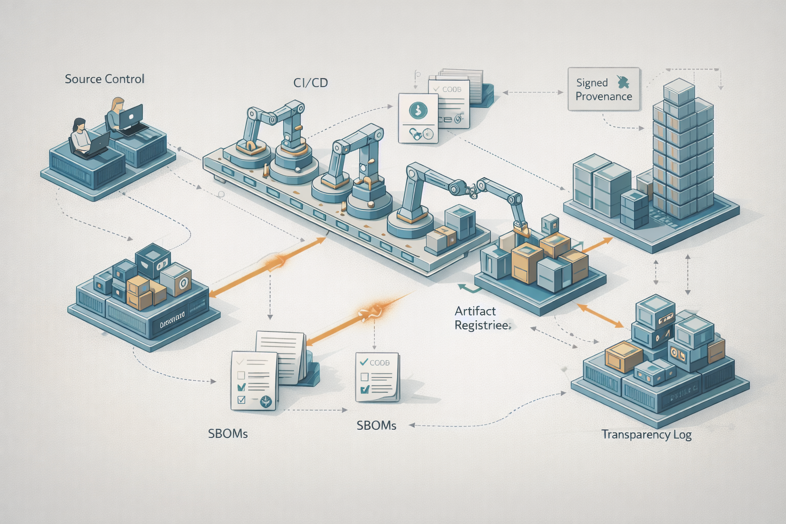 The software supply chain is the set of processes, tools, and artifacts that transform source code into software that runs in production. Protecting that supply chain is critical: compromises at any step — compromised dependencies, corrupted CI/CD pipelines, or forged releases — can lead to large-scale incidents that affect thousands of downstream systems.