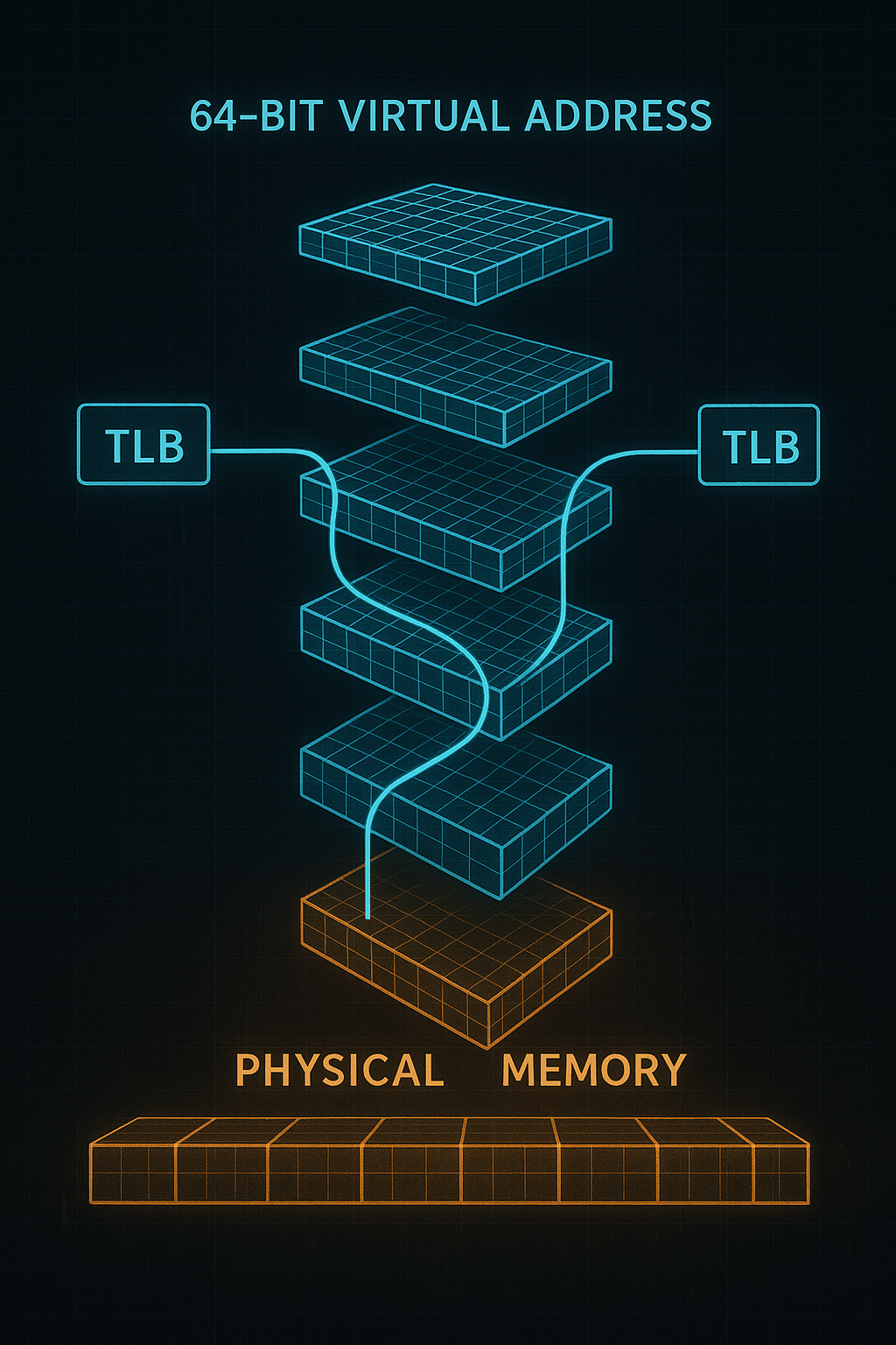 A comprehensive exploration of virtual memory, page tables, and address translation. Learn how operating systems provide memory isolation, enable overcommitment, and optimize performance with TLBs and huge pages.